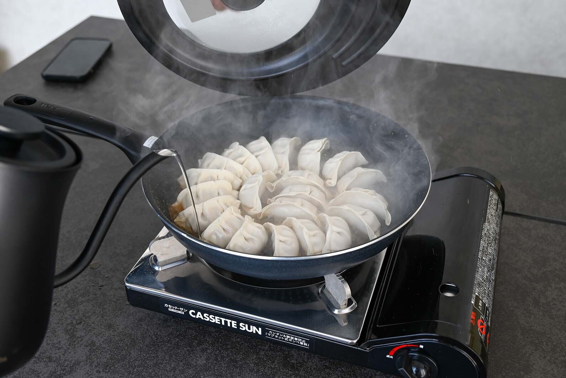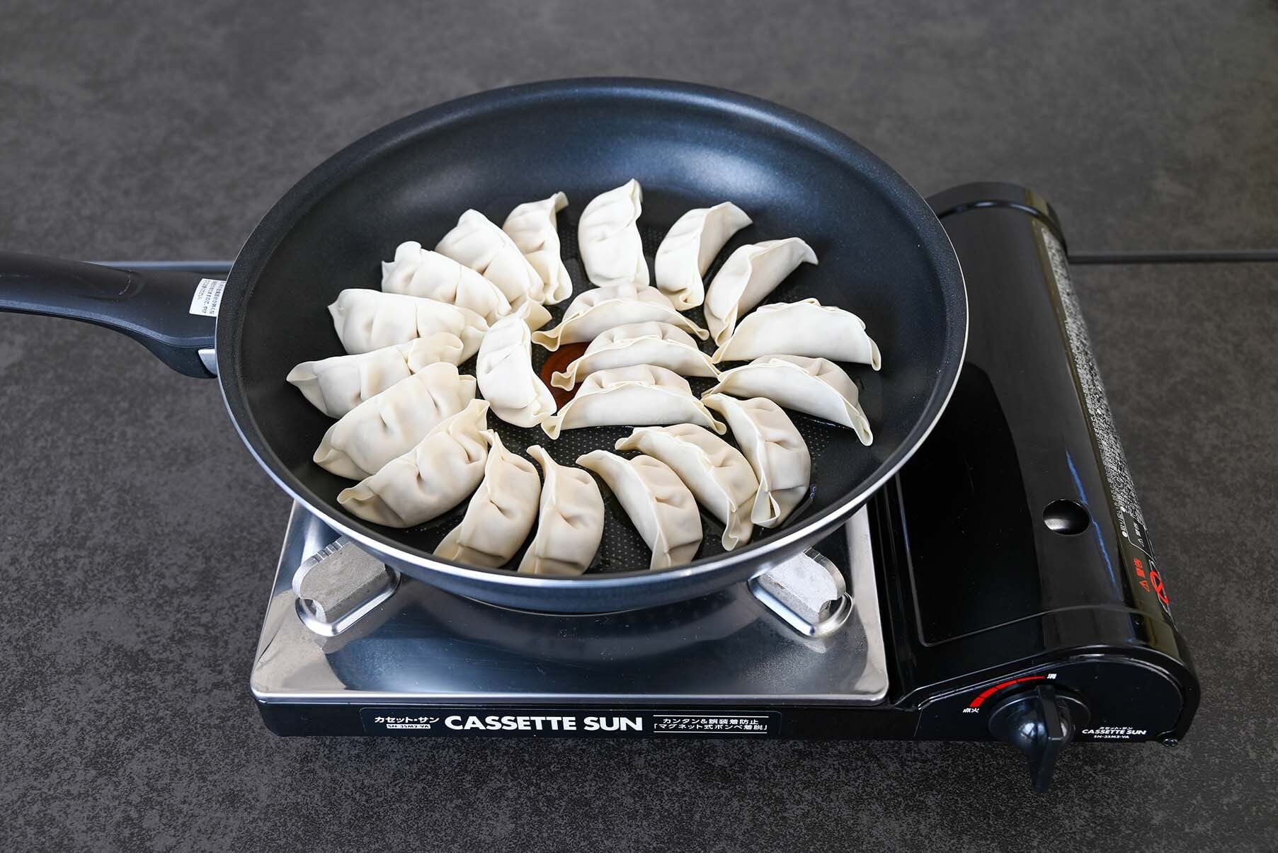 ② 火を止め、餃子の表面を下にして
