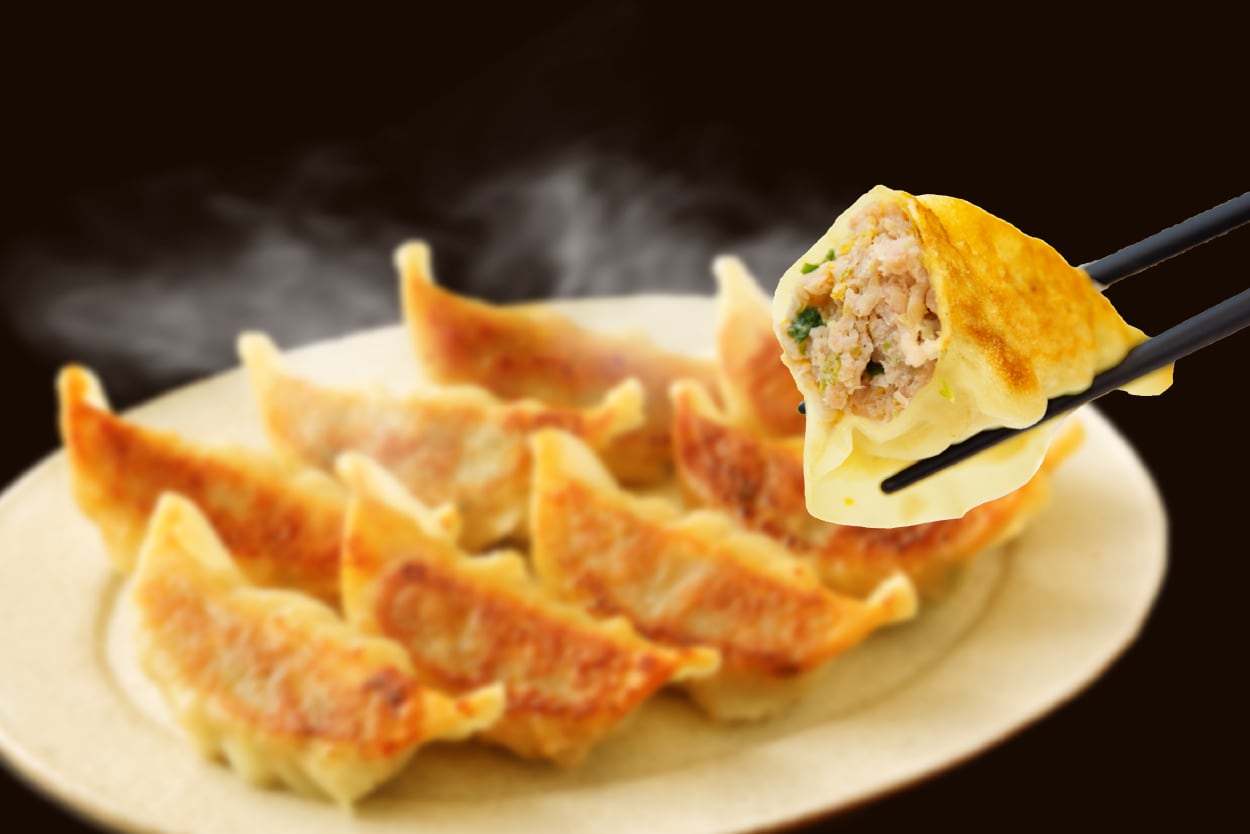 九州産の豚肉と国産野菜をふんだんに使い下味をつけ仕上げた餡を、博多ならではの薄めの皮で丁寧に包み込みました。